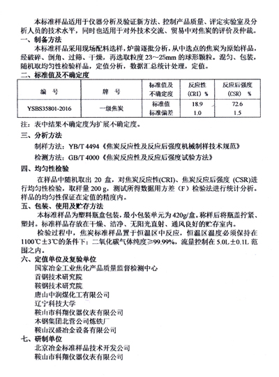 本標(biāo)準(zhǔn)樣品適用于儀器分析及驗(yàn)證新方法、控制產(chǎn)品質(zhì)量、評定實(shí)驗(yàn)室及分析人員的技術(shù)水平,同時(shí)也適用于對外技術(shù)交流、貿(mào)易中對焦炭的評價(jià)及仲裁。