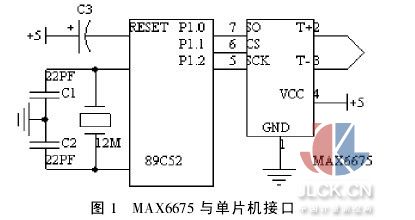 1引言 溫度在工農(nóng)業(yè)生產(chǎn)中是用的最多的熱工量,熱電偶作為一種接觸式溫度傳感器由于其結(jié)構(gòu)簡單,測溫范圍寬,精度高等優(yōu)點,所以在工業(yè)溫度測量中廣泛應(yīng)用。但在熱電偶的使用中,需解決兩方面的問題:一是需對熱電偶的冷端進行溫度補償。二是對熱電勢和溫度的非線性處理。本文利用美國MAXIM公司生產(chǎn)的K型溫度補償器MAX6675來實現(xiàn)冷端的溫度補償,用二次插值的方法對熱電勢和溫度的非線性進行處理,實踐證明,該方法精度高、可靠性好。 2熱電偶冷端溫度補償電路 具有冷端補償?shù)膯纹琄型熱電偶放大器與數(shù)字轉(zhuǎn)換器MAX6675內(nèi)部自帶冷端溫度補償、線性校正、A/D轉(zhuǎn)換器、熱電偶斷線檢測等功能,它將溫度測量值轉(zhuǎn)換為單片機能識別的16位二進制數(shù)字溫度讀數(shù),其測溫范圍為0~1023.75℃,轉(zhuǎn)換精度為0.25℃,冷端溫度的補償范圍為-20~+85℃,工作電壓為3.0~5.5V,當冷端溫度波動時,MAX6675仍能精確檢測熱端的溫度變化[2,4]。在使用中僅需2線SPI串行接口,與單片機連接非常方便。這里以AT89C52單片機為例,給出MAX6675與單片機接口構(gòu)成的測溫電路,接口如圖1所示[1]。