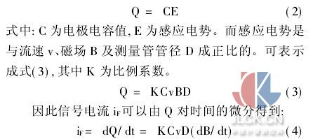 其基本原理是:電容式電磁流量計(jì)是通過大面積電極同被測(cè)流體形成的電容來耦合電磁感應(yīng)產(chǎn)生的與流速相關(guān)的感應(yīng)電勢(shì)的,根據(jù)電容的特性,在檢測(cè)電極上存貯的電量: