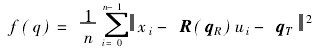 (17) 使用四元數(shù)表示R3中的旋轉(zhuǎn),需要計算四個旋轉(zhuǎn)參數(shù)和三個平移參數(shù)來評估兩個點(diǎn)集之間的移動·將這些參數(shù)放入一個向量q=[qT,qR]中,qT表示平移向量,qR表示旋轉(zhuǎn)向量·配準(zhǔn)的目標(biāo)表達(dá)式就可以轉(zhuǎn)換為式(18),也就使得目標(biāo)函數(shù)f(q)的值最小