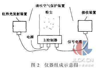 儀器由紅外光發(fā)射裝置、接收裝置、主控制器、清吹空氣保護(hù)裝置和遠(yuǎn)程操作軟件組成,如圖2所示。