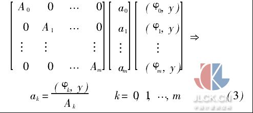 由表2可知,3階和4階的個(gè)別點(diǎn)擬合誤差較大,不能滿足流量檢測的精度要求。而如果增大擬合次數(shù),其系數(shù)矩陣不易于計(jì)算,在單片機(jī)中更難實(shí)現(xiàn)。因此,選取正交多項(xiàng)式為基作最小二乘擬合。假設(shè)測得的各實(shí)驗(yàn)點(diǎn)數(shù)據(jù)為(x0,f0), (x1,f1),…,(xn,fn),各數(shù)據(jù)點(diǎn)的權(quán)重均為1,選取的正交多項(xiàng)式簇為{φ0(x),φ1(x),…,φm(x)}。將基函數(shù)的系數(shù)矩陣變?yōu)閷顷?從而大大簡化計(jì)算,不需要解矩陣方程就可直接求解。