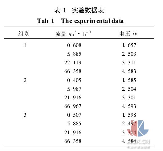 從表1可以看出,電壓與流量之間具有較好的一一對應(yīng)關(guān)系,因此,可以根據(jù)輸出電壓來檢測流場中的流量;且在相同的實(shí)驗(yàn)條件下,當(dāng)氣體流量相同時(shí),三組實(shí)驗(yàn)的輸出電壓值也基本相同,即三組實(shí)驗(yàn)的輸出電壓重復(fù)性較好。