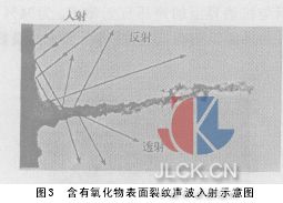 2.3由于裂紋界面的不平整,會產(chǎn)生超聲波常見的散射衰減。如果標準傷和裂紋深度一樣(長度不計),那么裂紋反射率會比標準傷低。見圖2,圖4。
