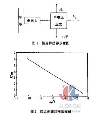 1引言 位移的測量在工業(yè)生產(chǎn)中被大量采用,而且在許多場合是非常必要的。電磁振動臺是一種以磁場能為媒介,可以實現(xiàn)由電能到機械能轉(zhuǎn)換的大功率換能 器。在控制系統(tǒng)控制下,超大功率放大器驅(qū)動振動臺工作,振動臺可以產(chǎn)生位移范圍達51mm,頻率從5一300Hz的正弦振動,并且其推動力可以達數(shù)噸。因 此電磁振動臺在國防工業(yè)、航空航天工業(yè)振動環(huán)境試驗中得到了廣泛的應用。然而,電磁振動臺在圍繞臺面中心作大位移快速振動實驗時,由于機械設計或其它偶然 因素的影響,臺面經(jīng)常偏離中心,如果偏心嚴重,則會損壞振動臺上試驗品和振動臺本身,造成重大經(jīng)濟損失。針對這一問題,國際和國內(nèi)采用了各種各樣的對中方 法,有機械的,有激光的,有充放氣的,但效果并不理想。針對電磁振動臺中的這一問題,本文發(fā)展了一種新型的大位移測量方法,并將這一方法應用到國產(chǎn)電磁振 動臺的自動對中調(diào)節(jié)中,成功地在國內(nèi)首次從技術(shù)上解決了電磁振動臺的電對中問題,擴大了電磁振動系統(tǒng)的有效位移長度。 2新型大位移測量原理 基于電渦流效應的接近傳感器在國內(nèi)外大量采用,它的原理是:當渦流線圈接近金屬導體時,線圈電感會發(fā)生變化,由這一原理,制成了各種各樣的接近傳感器。理論分析與實踐證明,在幾毫米的微小距離內(nèi),經(jīng)過精心的設計與加工,可以制作出線性非常優(yōu)越的接近傳感器。 圖1是接近傳感器示意圖,它由電渦流頭和放大器兩部分組成,該放大器應加入負電源。當電渦流頭與金屬鋁板之間的距離在0.5二6~之間線性變化時,輸出電壓在一0.84一一10V之間線性變化,圖2為在工廠實測數(shù)據(jù)示意圖,縱坐標為距離,橫坐標為輸出電壓。