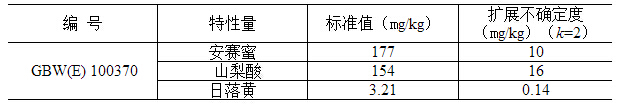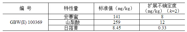 GBW(E)100369?蘋果醋中安賽蜜、山梨酸和日落黃成分分析標(biāo)準(zhǔn)物質(zhì)