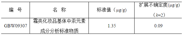 GBW09307?霜類化妝品中汞成分分析標(biāo)準(zhǔn)物質(zhì)