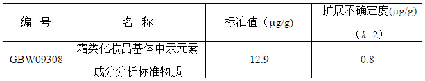 3種霜類化妝品中汞成分分析標(biāo)準(zhǔn)物質(zhì)