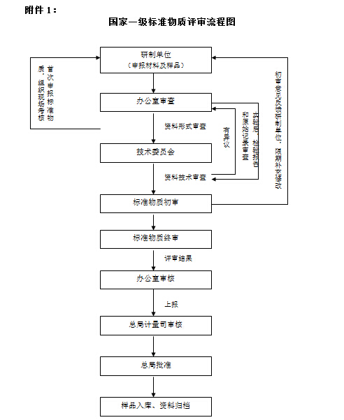國家標(biāo)準(zhǔn)物質(zhì)工作規(guī)則總 ?則第一條 ?為加強(qiáng)和規(guī)范標(biāo)準(zhǔn)物質(zhì)的管理,提高我國標(biāo)準(zhǔn)物質(zhì)的管理、制造水平,根據(jù)《中華人民共和國計(jì)量法》和《標(biāo)準(zhǔn)物質(zhì)管理辦法》的有關(guān)規(guī)定,制定本規(guī)則。 第二條 ?本規(guī)則所稱標(biāo)準(zhǔn)物質(zhì)是具有準(zhǔn)確量值,主要用于檢定、校準(zhǔn)測量儀器、評價(jià)測量方法準(zhǔn)確度或考核實(shí)驗(yàn)室測量能力的標(biāo)準(zhǔn)物質(zhì)。 第三條 ?本規(guī)則適用于新制造標(biāo)準(zhǔn)物質(zhì)的評審以及復(fù)制和新定值標(biāo)準(zhǔn)物質(zhì)的評審。新制造是指未經(jīng)評審的標(biāo)準(zhǔn)物質(zhì)新品種,復(fù)制是指原有國家一級、二級標(biāo)準(zhǔn)物質(zhì)的重復(fù)制造,新定值是指對將超過定值有效期的標(biāo)準(zhǔn)物質(zhì)重新定值。 機(jī)構(gòu)與職責(zé)第四條 ?全國標(biāo)準(zhǔn)物質(zhì)管理委員會(huì)辦公室(以下簡稱辦公室),負(fù)責(zé)受理標(biāo)準(zhǔn)物質(zhì)制造計(jì)量器具許可證的申請、對申請材料進(jìn)行符合性審查、委托評審和考核,對評審和考核意見的審核以及匯總材料上報(bào)、辦理發(fā)證等具體工作。 第五條 ?國家標(biāo)準(zhǔn)物質(zhì)技術(shù)委員會(huì)(以下簡稱技術(shù)委員會(huì))為全國標(biāo)準(zhǔn)物質(zhì)管理委員會(huì)的技術(shù)專家組織,接受委托對申請的標(biāo)準(zhǔn)物質(zhì)項(xiàng)目進(jìn)行評審和考核。 工作要求第六條 ?標(biāo)準(zhǔn)物質(zhì)的定級條件 1、一級標(biāo)準(zhǔn)物質(zhì)的定級條件 應(yīng)符合國家一級標(biāo)準(zhǔn)物質(zhì)技術(shù)規(guī)范的要求 。 2、二級標(biāo)準(zhǔn)物質(zhì)的定級條件 (1)用與一級標(biāo)準(zhǔn)物質(zhì)進(jìn)行比較測量的方法或一級標(biāo)準(zhǔn)物質(zhì)的定值方法定值; (2)準(zhǔn)確度和均勻性未達(dá)到一級標(biāo)準(zhǔn)物質(zhì)的水平,但能滿足實(shí)際測量的需要; (3)穩(wěn)定性在半年以上,或能滿足實(shí)際測量的需要; (4)包裝形式符合標(biāo)準(zhǔn)物質(zhì)技術(shù)規(guī)范的要求。 第七條 ?標(biāo)準(zhǔn)物質(zhì)的復(fù)制要求 標(biāo)準(zhǔn)物質(zhì)制造單位,必須對重復(fù)制造的每批標(biāo)準(zhǔn)物質(zhì)進(jìn)行定值測量、均勻性檢驗(yàn)和穩(wěn)定性考察,不得低于原標(biāo)準(zhǔn)物質(zhì)技術(shù)水平,否則,需按新品種重新申請。 第八條 ?申請材料要求 申請單位需提交以下用A4紙尺寸裝訂成冊的文字材料(一級標(biāo)準(zhǔn)物質(zhì)一式十份,二級標(biāo)準(zhǔn)物質(zhì)一式五份)及電子版材料: 1、標(biāo)準(zhǔn)物質(zhì)制造計(jì)量器具許可證申請書; 2、標(biāo)準(zhǔn)物質(zhì)認(rèn)定證書(一級標(biāo)準(zhǔn)物質(zhì)需中、英文版)和標(biāo)簽的樣式; 3、標(biāo)準(zhǔn)物質(zhì)最終定值的量值匯總表; 4、申請一級標(biāo)準(zhǔn)物質(zhì)研制單位信息表(見附件3); 5、申請一級標(biāo)準(zhǔn)物質(zhì)應(yīng)提供制造單位的上級主管部門技術(shù)評審意見; 6、用戶試用情況報(bào)告(用戶2-3家); 7、保障統(tǒng)一量值需要的供應(yīng)能力和管理制度; 8、研制報(bào)告; 9、與所制造的標(biāo)準(zhǔn)物質(zhì)相適應(yīng)的生產(chǎn)設(shè)施、測量儀器設(shè)備和實(shí)驗(yàn)室條件,滿足生產(chǎn)需要的工程技術(shù)人員和管理人員情況以及相關(guān)的質(zhì)量管理文件; 10、國外同類標(biāo)準(zhǔn)物質(zhì)的目錄檢索查新報(bào)告; 11、提交材料的同時(shí)應(yīng)提交1套標(biāo)準(zhǔn)物質(zhì)樣品。 第九條 ?評審和考核專家要求 參加標(biāo)準(zhǔn)物質(zhì)評審和考核的專家,應(yīng)具備以下條件: 1、熟悉相關(guān)的法律、法規(guī)和技術(shù)規(guī)范; 2、熟悉專業(yè)范圍內(nèi)標(biāo)準(zhǔn)物質(zhì)的研制技術(shù)知識、測量方法、質(zhì)量控制技術(shù)以及相關(guān)統(tǒng)計(jì)分析原理; 3、忠于職守,客觀、公正; 4、對申請單位提供的標(biāo)準(zhǔn)物質(zhì)樣品和技術(shù)材料保密。 評審流程第十條 ?向國家質(zhì)檢總局申請一級和二級標(biāo)準(zhǔn)物質(zhì)的單位應(yīng)將申請書、技術(shù)材料和標(biāo)準(zhǔn)物質(zhì)樣品提交到辦公室。 第十一條 ?辦公室對材料進(jìn)行符合性審查,符合要求的,分別按一級標(biāo)準(zhǔn)物質(zhì)和二級標(biāo)準(zhǔn)物質(zhì)委托技術(shù)委員會(huì)進(jìn)行評審和考核。不符合要求的,由辦公室向申請單位提出補(bǔ)充、完善的要求,材料退回。 第十二條 ?一級標(biāo)準(zhǔn)物質(zhì)的評審分為初審和終審,初審由技術(shù)委員會(huì)組織同行專家進(jìn)行評審;終審由技術(shù)委員會(huì)的全體委員進(jìn)行評審,贊成票超過到會(huì)人數(shù)2/3的項(xiàng)目予以通過。評審?fù)瓿珊?,將書面評審意見提交辦公室。 第十三條 ?一級標(biāo)準(zhǔn)物質(zhì)的評審每半年進(jìn)行一次,評審時(shí)間安排如下: 1、上半年:4月30日前受理申請材料;5月 25日 至 30日初審; 7月 25日至 30日前完成終審。 2、下半年:9月 30日前受理申請材料;10月 25日至 30日初審;12月 25日至 30日完成終審。 第十四條 ?二級標(biāo)準(zhǔn)物質(zhì)