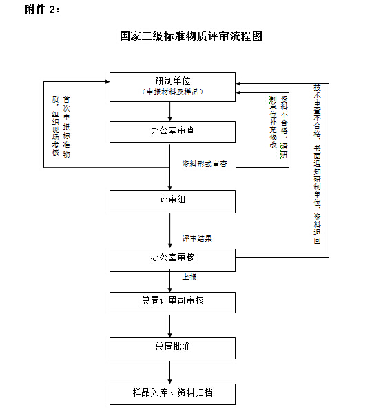 附件:1、國家一級標(biāo)準(zhǔn)物質(zhì)評審流程圖 ? ? ?2、國家二級標(biāo)準(zhǔn)物質(zhì)評審流程圖 ?