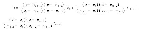 3軟件的非線性處理 對熱電偶得到的非線性信號的處理采用查表和程序計算的方法來解決,由擬和理論可知,對非線性信號可用多項式y(tǒng)=a0+a1x+a2x2+a3x3+…+anxn來擬和,且多項式次數(shù)越高,精度也越高。但在實際的智能測溫系統(tǒng)中,由于受速度和存儲容量的限制,只能采用有限次擬和。本文根據(jù)熱電偶的熱電勢與溫度曲線,提出用二次插值的方法(即取多項式前三項)來對非線性進行處理,其方法是先在存儲器中存入熱電勢和溫度的序列表(e0, t0)(e1, t1)(e2, t2)(e3, t3)……(en, tn)對于任意的熱電勢e,假設(shè)通過程序可判別它在熱電勢和溫度序列中的位置為ei≤e≤ei+1≤ei+2(0≤i≤n-2)則對應(yīng)的溫度t可由下式計算