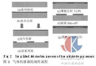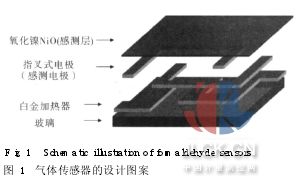 引言 近年來,由于環(huán)保意識的抬頭,大眾對于空氣質(zhì)量的要求日漸提升。而現(xiàn)代人處于室內(nèi)環(huán)境的時間與日俱增,統(tǒng)計報告指出,一般人平均一生中有58-78%的時間待在室內(nèi),而在一天當(dāng)中更有90%的時間是在室內(nèi)環(huán)境渡過。室內(nèi)建材在加工制造的過程中,所使用的許多化學(xué)物質(zhì),例如油漆、膠類及清潔劑所散發(fā)的揮發(fā)性有機化合物和室內(nèi)裝飾物及家俱所散發(fā)之甲醛,而這些污染物可能會引發(fā)呼吸道癥狀、呼吸道癥狀或刺激性癥狀等,通常這些癥狀都是進入建筑物后才發(fā)生,離開建筑物后癥狀就會減輕或消失,我們稱為「病大樓癥候群」[1]。由于甲醛高化學(xué)活性、高純度、以及相當(dāng)廉價,因而被廣泛應(yīng)用在工業(yè)生產(chǎn)建筑物材料及多數(shù)家用產(chǎn)品的化學(xué)原料[2, 3]。但建材及家具涂料會逐漸釋放游離甲醛,人體如果接觸過量甲醛,可能會引發(fā)呼吸道或皮膚發(fā)炎、刺激眼睛,甚至可能致癌。根據(jù)美國國家職業(yè)安全衛(wèi)生組織規(guī)定人們長期曝露甲醛濃度不得超過1ppm[4]。 傳統(tǒng)甲醛的檢測儀器是藉由光學(xué)感測方式(GC-MS)[5]對甲醛進行定量與測定。然而這種結(jié)合光學(xué)的量測方式很昂貴、耗時、復(fù)雜且不能實時得知甲醛曝露的含量。隨著微機電系統(tǒng)(MEMS)技術(shù)跟微制造技術(shù)日趨成熟[6],不僅使組件體積大幅縮小,組件耗能也大量的減少除此之外,可批次制造,可節(jié)省材料與成本,感測組件的性能也能趨于一致更重要的是,其可積體化的特性,可將控制組件與感測材料整合于單一芯片上,實現(xiàn)微小快速的感測系統(tǒng)。 本文是利用MEMS方式制作傳感器,以石英玻璃當(dāng)作基材,利用白金在高溫時熱膨脹系數(shù)小的特性,其本身的電阻值來提供焦耳熱,當(dāng)作實驗中的加熱器,并以氧化鎳作為感測層,使用白金作為電極量測感測層電阻的變化。研究中使用小型的環(huán)境測試箱檢測箱內(nèi)若存在甲醛氣體,氧化鎳薄膜層上導(dǎo)電度會增加,因而導(dǎo)致感測層電阻值降低,藉由觀察感測層電阻值的差異性,就可得知感測氣體在感測空間中的散布濃度情形。 1氣體傳感器的設(shè)計與原理 1. 1催化劑的作用 本研究所用的原理是利用感測層當(dāng)催化劑,當(dāng)甲醛氣體靠近感測層時會發(fā)生催化反應(yīng),其化學(xué)反應(yīng)式如下: