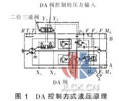 引言 液壓傳動(dòng)在國外工程車輛中的應(yīng)用比較廣泛,有許多世界知名的公司,像德國的力士樂公司、林德公司和SAUER-SUNDSTRAND 公司等等,在這些工程車輛制造企業(yè)的發(fā)動(dòng)機(jī)功率在70 kW 以下的小型裝載機(jī)、叉車等工程車輛基本上都采用了液壓傳動(dòng)。我國的液壓傳動(dòng)技術(shù)在工程機(jī)械中的應(yīng)用十分廣泛,而且還會(huì)有進(jìn)一步發(fā)展的趨勢,所以,加強(qiáng)液壓傳動(dòng)方面的研究十分有必要。 1 傳動(dòng)系統(tǒng)的種類 目前工程車輛的傳動(dòng)分3 種:(1)機(jī)械式傳動(dòng)系統(tǒng),主要由離合器、變速器、萬向傳動(dòng)裝置和驅(qū)動(dòng)橋等組成,它的傳動(dòng)順序一般為發(fā)動(dòng)機(jī)—主離合器—變速箱—主傳動(dòng)—邊輪減速—終傳動(dòng)等 6 個(gè)環(huán)節(jié);(2)液力機(jī)械式傳動(dòng)系統(tǒng),主要有液力變矩器、動(dòng)力換擋變速箱、傳動(dòng)軸、前后驅(qū)動(dòng)橋、輪邊減速器和后橋脫開機(jī)構(gòu);它的傳動(dòng)順序一般為發(fā)動(dòng)機(jī)—液力變矩器—變速箱—主傳動(dòng)—輪邊減速—終傳動(dòng);(3)液壓動(dòng)力傳動(dòng)系統(tǒng),液壓動(dòng)力傳動(dòng)實(shí)際上應(yīng)該稱為液壓機(jī)械式動(dòng)力傳動(dòng)系統(tǒng)。 除工作裝置和軸向系統(tǒng)采用液壓傳動(dòng)外,車輪的行走也靠液壓傳動(dòng)與機(jī)械傳動(dòng)相結(jié)合。其系統(tǒng)主要以液壓泵和液壓馬達(dá)為主,輔以調(diào)節(jié)控制裝置和速度匹配裝置等組成的無級(jí)變速傳動(dòng)系統(tǒng)負(fù)荷傳感技術(shù)是通過執(zhí)行器負(fù)荷傳感系統(tǒng),實(shí)現(xiàn)壓力、流量、功率控制的節(jié)能控制技術(shù)。以上比較可以得出,由于礦井下基本是光線不好和道路坑洼起伏的情況,機(jī)械式和液力機(jī)械式傳動(dòng)都造成司機(jī)在井下?lián)Q擋頻繁和操作復(fù)雜的問題,容易導(dǎo)致事故的發(fā)生; 而液壓傳動(dòng)則可有效減少換擋和操作復(fù)雜的問題, 在煤礦這類特殊工況條件下就有明顯的優(yōu)勢。 2 DA-HA 傳動(dòng)控制方式 2.1 DA 控制 如圖1 所示, 與輸入轉(zhuǎn)速有關(guān)的控制壓力由DA 控制閥通過三位四通方向閥作用在油泵的變量油缸上, 由油缸推動(dòng)泵的斜盤而實(shí)現(xiàn)泵的排量無級(jí)調(diào)節(jié)。 泵的液壓油流動(dòng)方向由開關(guān)液控開關(guān)或電控開關(guān)確定。發(fā)動(dòng)機(jī)驅(qū)動(dòng)轉(zhuǎn)速升高→控制壓力增大,控制壓力升高→ 泵的排量增大。DA 控制的目標(biāo)是對發(fā)動(dòng)機(jī)有較高的功率利用率(90%-100%)。DA 控制靠設(shè)置目標(biāo)負(fù)荷率, 可以防止發(fā)動(dòng)機(jī)因?yàn)槌d而熄火, 當(dāng)外負(fù)載到達(dá)發(fā)動(dòng)機(jī)所能承受的極限位置的時(shí)候, 變量泵靠減小排量來限制發(fā)動(dòng)機(jī)的負(fù)載繼續(xù)增加,不會(huì)使發(fā)動(dòng)機(jī)頻繁熄火。DA 控制的泵的出口壓力p 直接作用于斜盤,使其向排量減小的方向回?cái)[,同樣具有變量泵固有的特性。