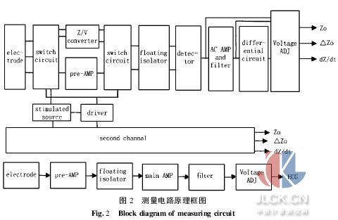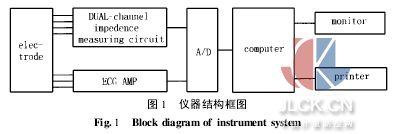阻抗容積圖,通常稱為阻抗血流圖或電阻圖等[1],即給人體被檢部位通過(guò)一種無(wú)損傷的微弱高頻電流,檢測(cè)二電極間的器官阻抗的綜合變化,來(lái)測(cè)定體液的生物阻抗與循環(huán)功能和血流動(dòng)力學(xué)變化的生物物理方法。這是一種簡(jiǎn)便的、無(wú)創(chuàng)傷性檢查方法。國(guó)外從三十年代開(kāi)始,在基礎(chǔ)醫(yī)學(xué)、實(shí)驗(yàn)醫(yī)學(xué)及臨床醫(yī)學(xué)等方面的應(yīng)用日漸廣泛,成為一種估量心動(dòng)周期時(shí)機(jī)體各部位搏動(dòng)性血液供應(yīng)的生物物理方法之一,近年來(lái)頗受重視。我國(guó)科技工作者從六十年代開(kāi)始這方面的研究工作。 目前阻抗容積圖的測(cè)量方法有二種,電橋式二電極法和直接式四電極法,后者克服了電極接觸電阻的影響,且儀器操作簡(jiǎn)便。發(fā)展應(yīng)用較快。近幾年來(lái)又發(fā)展了導(dǎo)納法測(cè)量技術(shù),目的是克服基礎(chǔ)阻抗對(duì)計(jì)算公式的影響。但以上這些儀器多數(shù)為單通道形式,對(duì)于同時(shí)要測(cè)量?jī)蓚€(gè)部位阻抗容積圖時(shí)就比較困難,國(guó)內(nèi)有些雙路阻抗測(cè)量?jī)x,多為四電極法,公用恒流源,通過(guò)開(kāi)關(guān)切換測(cè)量電極實(shí)現(xiàn),而且測(cè)量時(shí)對(duì)環(huán)境和被測(cè)對(duì)象要求較嚴(yán)。我們根據(jù)科研工作的需要,研制了應(yīng)用于特殊實(shí)驗(yàn)室的腦阻抗容積圖測(cè)量?jī)x。 由于測(cè)量的環(huán)境特殊,不允許在腦部放置更多的電極,而且腦部電場(chǎng)分布不均勻,作二邊對(duì)照檢查,需二路同步測(cè)量,據(jù)有關(guān)的資料介紹,由于頭部的電生理不對(duì)稱而產(chǎn)生電流線的不對(duì)稱,此時(shí)用四電極法測(cè)量不太合適[1]。為此,作為監(jiān)測(cè),提出應(yīng)用二電極的方法。但電橋式二電極法,作二路同步測(cè)量,既有操作上調(diào)平衡的麻煩,又有互相干擾的問(wèn)題。為此,我們通過(guò)多次實(shí)驗(yàn)探索,應(yīng)用他激式雙向恒流源的技術(shù),使二個(gè)電極既是源電極又是測(cè)量電極,實(shí)現(xiàn)一種新的兩電極測(cè)量法技術(shù)。同時(shí)采用內(nèi)同步開(kāi)關(guān)切換的辦法,解決了二路信號(hào)同步測(cè)量的問(wèn)題??紤]到儀器的通用性,又增加了從二電極法轉(zhuǎn)換成四電極法的電路,使該儀器成為多用途的阻抗容積圖測(cè)量?jī)x。同時(shí),我們采取了浮地隔離措施,使儀器使用安全可靠。該儀器可以應(yīng)用于普通的臨床醫(yī)學(xué)和醫(yī)學(xué)科研實(shí)驗(yàn)中。 主要功能和技術(shù)指標(biāo) 二路浮地隔離式阻抗測(cè)量放大器a.單路工作或二路同時(shí)工作方式可任選,二極法、四極法可任選擇; b.采用的恒流源為50 kHz正弦波,分為0.5 mA、1 mA、2 mA 3檔; c.每路輸出信號(hào):基礎(chǔ)阻抗Z0,阻抗變化量△Z0,及其微分波dZ/dt。 一路浮地隔離式心電放大器電路增益分為1000, 1500, 2000三檔。 軟件功能采用菜單式界面,實(shí)時(shí)采集、顯示、存貯5路信號(hào)波形數(shù)據(jù),實(shí)驗(yàn)時(shí)每次存貯數(shù)據(jù)時(shí)間可自選,最長(zhǎng)5 min。數(shù)據(jù)自動(dòng)分析并實(shí)時(shí)顯示:心輸出量(CO)、主波幅相對(duì)比值(Hi/H0)、心率(HR)、實(shí)驗(yàn)時(shí)間(Time)等主要參數(shù),并具有報(bào)警予置功能。 硬件描述 整個(gè)儀器系統(tǒng)由測(cè)量電路、A/D板、計(jì)算機(jī)、顯示器、打印機(jī)等組成,如圖1所示,也可以增加多筆記錄儀,供不同的需要。