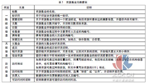 元數(shù)據(jù)最基本的單元是元素。由于元素具有結(jié)構(gòu)簡單、通俗易懂、描述靈活等特點而被廣泛用于各領(lǐng)域的資源描述。本研究中對資源集合元數(shù)據(jù)設(shè)計了如表1中所示的元素, 對資源對象元數(shù)據(jù)設(shè)計的元素如表2所示。