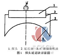 碳精棒是一種非金屬材料,在電爐煉鋼中是一種重要的消耗材料。它的晶粒粗大,分子間隙較大,表面較粗糙。其常見缺陷是氣孔,夾渣和裂紋。本文從NDT方面來探討其檢測方法和探傷工藝。根據(jù)無損檢測的理論基礎(chǔ)可知:渦流探傷、磁粉探傷、滲透探傷均不適合對碳精棒進行檢測,而使用X射線,因碳精主要成分是碳元素,它對X射線吸收系數(shù)極小,易產(chǎn)生康普頓散射,又因其晶粒粗,分子間隙大,缺陷在底片上的靈敏度極低,所以漏檢率很高,也不適合對其檢驗。 根據(jù)碳精棒的特點,從超聲波理論和石墨碳衰減的頻率特性曲線可知,只要解決了設(shè)備問題、超聲波在傳播過程中的衰減問題和超聲波探傷的耦合問題,使用超聲波檢測碳棒是完全可行的。 1設(shè)備及材料 ● 100 50碳精棒 ●CTS-25型非金屬超探儀 ●探頭三種:50KC-28100KC-40250KC-40 ●耦合方式:高致密度薄膜、機油、甘油 ●環(huán)氧樹脂和乙二胺制作的延遲塊 2實驗方法 2.1延遲塊 因使用探頭直徑較大,材料曲率較大,探頭與棒材直接接觸面較小,聲能損失較多,易激發(fā)表面復(fù)型波,使用延遲塊可以大大縮減近場區(qū),使聲能較集中,同時避免變形波。如圖1。 50KC-28h=λ/2=29 mm 100KC-40h=λ/2=14.5 mm 250KC-40h=λ/2=5.8 mm 當(dāng)h=nλ/2時,超聲波的透過率最大。